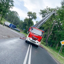 Naszym zadaniem było zabezpieczenie miejsca zdarzenia (zamknięcie drogi) oraz usunięcie zagrożenia przy pomocy drabiny mechanicznej.