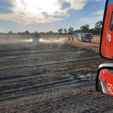 Do dwóch pożarów na polach wyjeżdżali dzisiaj strażacy z PSP Bolesławiec i okolicznych OSP, m.in. z Trzebienia, Tomaszowa Bolesławieckiego, Warty Bolesławieckiej i Różyńca. Najpierw paliło się ściernisko i pole ze zbożem koło Tomaszowa Bolesławieckiego. Ścierniska spaliło się około 5 hektarów, natomiast zboża na pniu około 0,5 ara. Następnie podobny pożar trawił pole koło Chościszowic. Tam spaliło się 2 hektary zboża i 1 hektar ścierniska.
