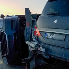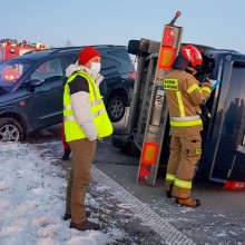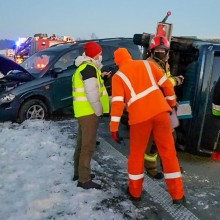 W poniedziałek, 1 lutego, kierowca przewożący na przyczepie inne auto uderzył w barierkę. Przyczepa z przewożonym autem przewróciła się.