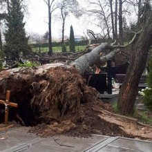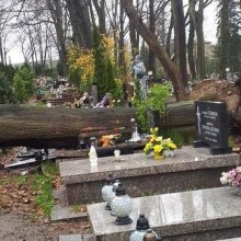 Sprawa odpowiedzialności za szkody, naprawę nagrobków, spowodowane wywrotem drzewa jest w trakcie wyjaśniania i zgłaszania do ubezpieczyciela.