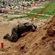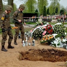 Przerwane ceremonie pogrzebowe. W ziemi znaleziono niewybuch fot. Patrol saperski z 23. Pułku Artylerii w Bolesławcu