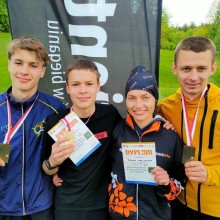 Najważniejszy jednak jest efekt. Trener: – Nasi spisali się znakomicie! Tytuł Mistrza Polski w M18 obronił Stanisław Pachnik, który w tym roku nie wraca bez medalu z najważniejszych imprez. W tym roku wywalczył już jeden tytuł mistrzowski na tzw. średnim dystansie i brązowy w biegu nocnym. Tym razem dodał złoto za „klasyka” i drugie złoto w biegu sztafetowym. W sumie w jego karierze juniorskiej to medale nr 13 i 14!!! Swój pierwszy złoty medal i tytuł Mistrza Polski wywalczył młodszy o trzy lata brat Jędrek. Zanosiło się już na to od jakiegoś czasu, jednak ma on godnego rywala w swojej kategorii (M16), z którym non stop toczy zacięte i wyrównane pojedynki. Na średnim dystansie zabrakło 30 sekund do złota, ale na klasyku to Jędrek był górą o ponad trzy minuty. Brawo jednak za walkę dla Bartka Maciejewskiego („Wataha” Warszawa).