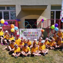 Po oficjalnym otwarciu Olimpiady i zapaleniu symbolicznego ognia olimpijskiego dzieci z pięciu grup rywalizowały w konkurencjach sportowych i sprawnościowych. Były to: rzut woreczkiem do celu, strzał na bramkę, rzut do kosza, skok w dal, łucznictwo, bieg przez płotki. Rywalizacja była spora, a satysfakcja, gdy się udało osiągnąć wymarzony wynik – jeszcze większa. Tak jak igrzyska olimpijskie, nasza Olimpiada także odbywała się pod hasłem szlachetnego współzawodnictwa i braterstwa wszystkich drużyn przedszkolnych. Wszyscy „Mali – Wielcy” sportowcy otrzymali pamiątkowe złote medale, a przedszkole dyplom za udział w Olimpiadzie. Zabawa była wspaniała! Dziękujemy i zapraszamy za rok!