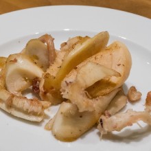 Burger z ośmiornicą smażoną na oleju sezamowym z włoską, lekko pikantną Ndują i sosem marinara podano jako kolejne danie i zestawiono je z hiszpańskim białym winem – jednym z największych atrakcji winnej turystyki na Półwyspie Iberyjskim. Leżakowane osiem miesięcy w dębowej beczce organiczne wino z orzechowo-miodową nutą i długim wykończeniem pasowało idealnie z delikatnie pikantnym burgerem.