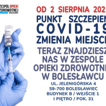 Jak informuje Zespół Opieki Zdrowotnej w Bolesławcu, od 2 sierpnia punkt szczepień przeciw covidowi zmieni miejsce; od tego dnia mieścić się będzie właśnie w szpitalu powiatowym: budynek, B, wejście 1, I piętro, pokój 31.