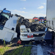 [...] o godzinie 11.34 dyżurny SK KP PSP w Złotoryi zadysponował nasz zastęp do wypadku 3 pojazdów ciężarowych na autostradzie A4, na 69 km.