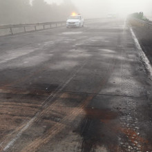 Uwaga! Na 300-metrowym odcinku A4 w kierunku Zgorzelca, pomiędzy węzłami Legnica Wschód a Legnickie Pole, wprowadzono tymczasowe ograniczenia prędkości do 80 km/h. Pojawiło się tam też ostrzeżenie o nierównej nawierzchni. Powód? Uszkodzenia infrastruktury, do których doszło po czwartkowym zderzeniu dwóch ciężarówek i potężnym pożarze.