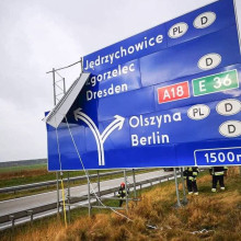 […] o godzinie 08:41 zostaliśmy zadysponowani do uszkodzonego drogowskazu na A4, 52 km w kierunku Zgorzelca.