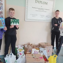 Młodzi ludzie własnoręcznie wykonali również kartki świąteczne, które trafiły do każdej paczki. W akcję włączyły się: