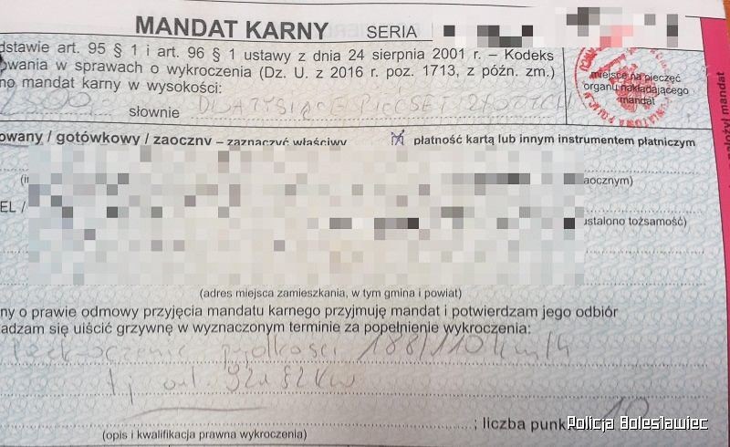 Kierowca dostał mandat w wysokości 2500 złotych oraz 10 punktów karnych.