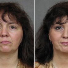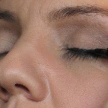 Twarz modelki ma kształt sercowaty, chcemy nadać jej bardziej owalny kontur. Poprawi to jej wygląd. Kosmetyczka zasłania partie twarzy, które będą korygowane (cieniowane). fot. Krzysztof Gwizdała