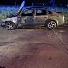 Samochodem podróżowała jedna osoba, opuściła auto o własnych siłach, przed przybyciem pierwszych zastępów. Na szczęście osobie podróżującej nic się nie stało.