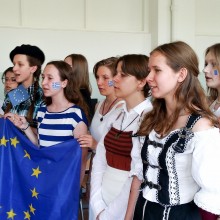 Kilkanaście dziewcząt w strojach krajów Unii wykonało hymn Unii z własnym tekstem. Polskie słowa do hymnu UE pisano w zespole, by jak najlepiej zintegrować młodzież.
