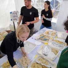 Z jednego ze stoisk środki że sprzedaży pierogów będą przeznaczone na wojsko ukraińskie.