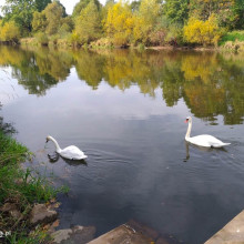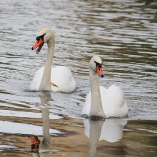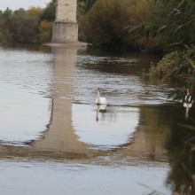 Para łabędzi koło wiaduktu nad Bobrem w Bolesławcu