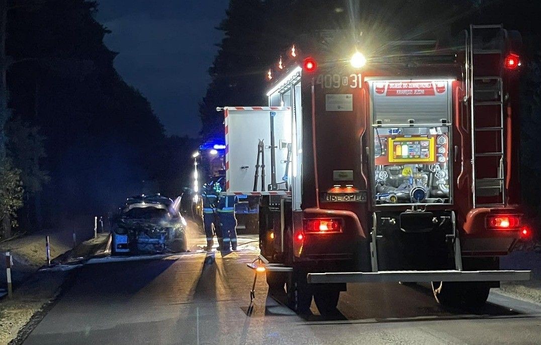 Pożar auta koło Osieczowa