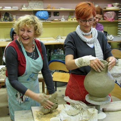 Uczestnicy zajęć tworzą dzieła inspirowane sztuką kreteńską. – Ta sztuka mnie fascynuje – podkreśla Joanna Mysłek-Michnowska, prowadząca warsztaty Glinart dla dorosłych. – Staram się, aby stała się ona inspiracją również dla warsztatowiczów.