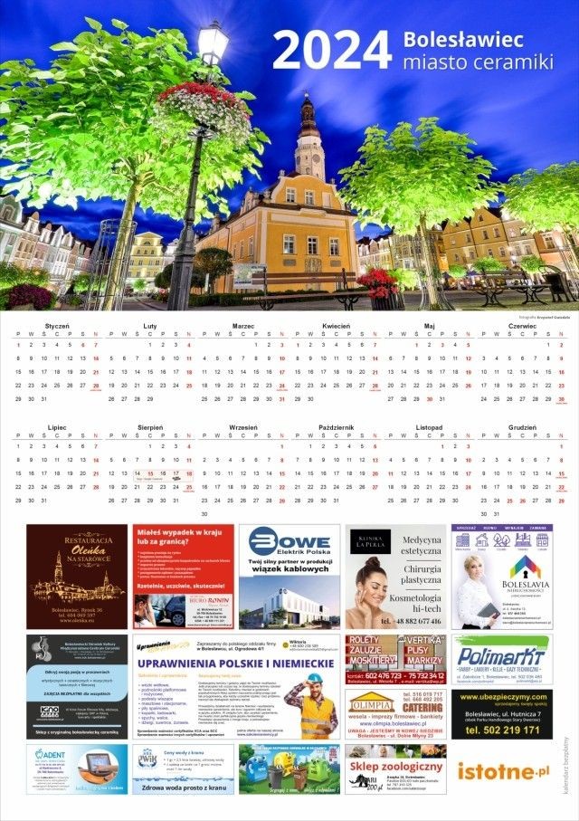 Wraz z darmową odbitką dostaniecie od nas kalendarz na 2024 rok z widokiem na przepiękny bolesławiecki rynek.