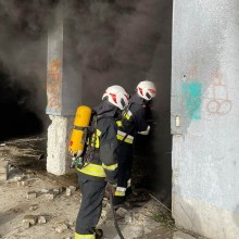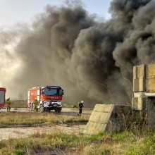 Pożar opon w hangarze na dawnym lotnisku