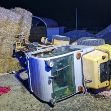 O godzinie 22:08 strażacy z Warty Bolesławieckiej zostali zadysponowani do „przygniecionego mężczyzny przez przewróconą ładowarkę podczas rozładunku balotów słomy w miejscowości Raciborowice Górne”.