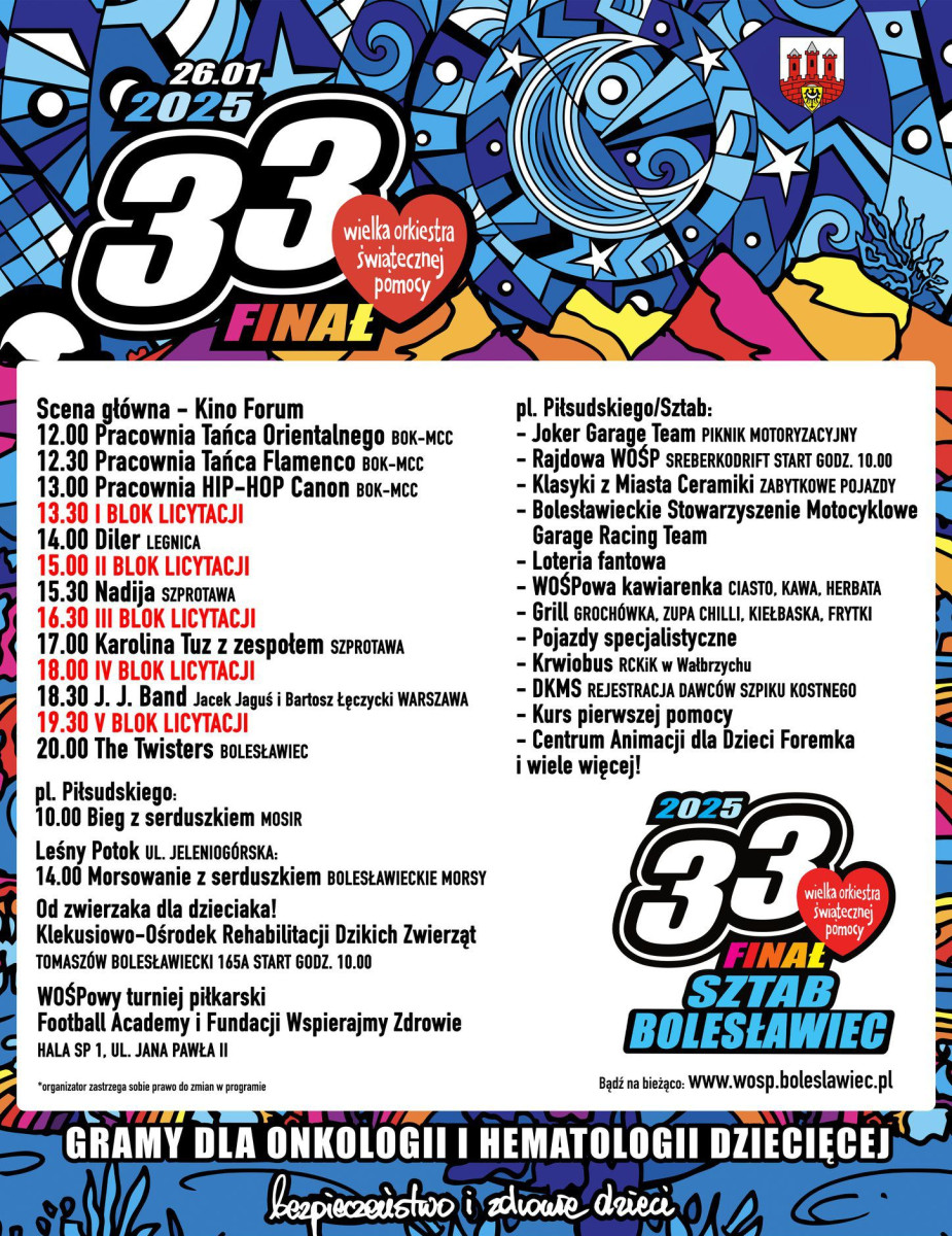 W Bolesławcu trwa 33. Finał Wielkiej Orkiestry Świątecznej Pomocy. Szczegółowy program i więcej informacji na socialmediowym profilu bolesławieckiego sztabu: