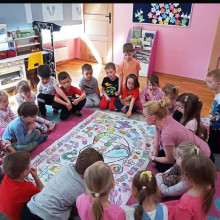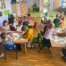 Dzieci z młodszych grup pomalowały plakat, wykleiły plasteliną kolorowe skarpetki, uczestniczyły w zabawach z wykorzystaniem kolorowych skarpetek oraz poznały historię z opowieści „Kolorowe Skarpetki i Tajemnica Przyjaźni”, a także obejrzały krótki filmik.