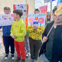 Niewątpliwie największą atrakcją piątku był pochód, w którym uczestniczyła cała społeczność szkolna – począwszy od przedszkolaków, a skończywszy na najstarszych klasach. Wszystkie dzieci przygotowały piękne transparenty, kolorowe wiosenne stroje i wspólnie z nauczycielami i piosenką na ustach wyruszyły na długi spacer po Warcie Bolesławieckiej, aby przywitać wiosnę i oznajmić całej społeczności lokalnej, że nadeszła jedna z najpiękniejszych pór roku. Przechodniom rozdawano żonkile, tulipany i słodkości. Radości było co niemiara!