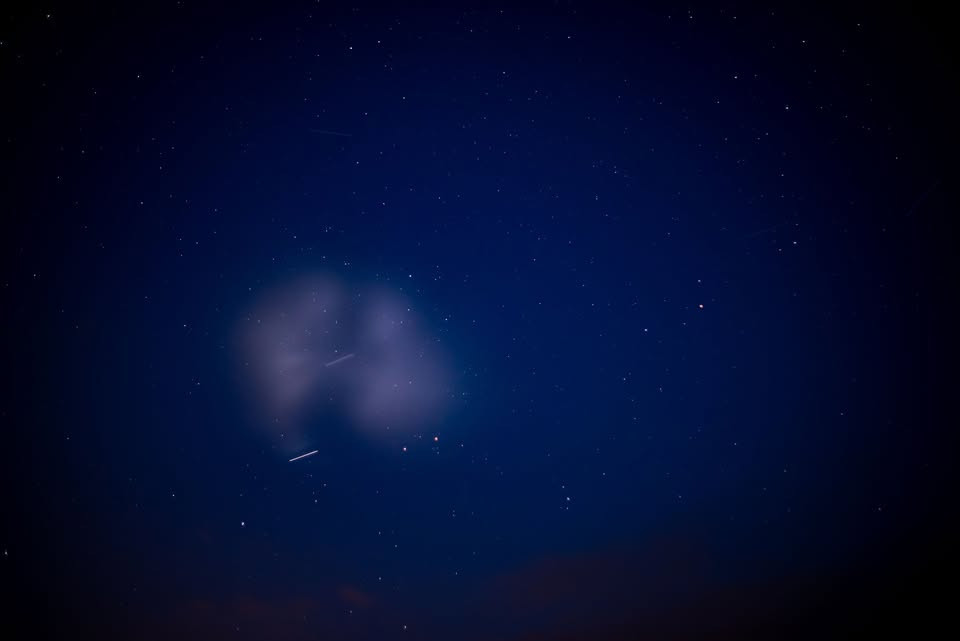 Czytelnik Łukasz Szuchalski podesłał nam zdjęcie prezentujące przelot rakiety Falcon 9 i zrzut paliwa (wykonane zostało w Parowej):