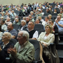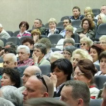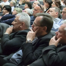 Uczestnicy spotkania z Janem Pospieszalskim. Na pierwszym planie prezydent miasta z rzeczniczką prasową Agnieszką Gergont fot. Krzysztof Gwizdała