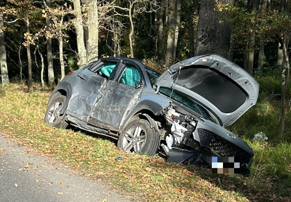 Jak się okazało na miejscu, samochód osobowy marki Hyundai wypadł z drogi i zatrzymał się w przydrożnym rowie.