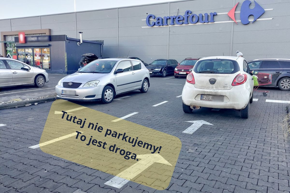 Niestety klienci sklepu jeszcze nie przyzwyczaili się do nowej organizacji ruchu na parkingi i notorycznie parkują auta poza miejscami parkingowymi. W ten sposób blokują przejazd przez parking. Jest to szczególnie uciążliwe w okresie przedświątecznym, kiedy parking jest wypełniony autami do ostatniego miejsca.