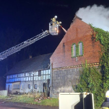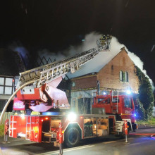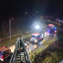 Bronimy niestrawioną ogniem część budynku, stawiamy drabinę mechaniczną i wraz z przybyciem kolejnych sił, podajemy kolejne prądy wody w natarciu. Po opanowaniu ognia przystępujemy do rozbiórki niestabilnego szczytu budynku oraz elementów więźby, aby zlikwidować wszystkie zarzewia ognia. Na czas działań droga wojewódzka została zablokowana. Na godzinę 8:00 rano, na miejscu, pozostaje jeden nasz zastęp, w celu dozorowaniu pożarzyska.