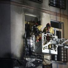 Gdy mundurowi dotarli na miejsce, zauważyli palący się baner reklamowy, który znajdował się w rogu budynku. Ogień objął już też część elewacji.