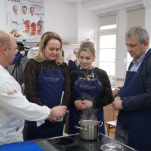 Tematem przewodnim spotkania było wykorzystanie owoców morza w karnawałowym wydaniu. Uczestnicy mieli okazję poznać tajniki przygotowania m.in. aromatycznej zupy krewetkowej z mlekiem kokosowym, grzybami enoki, trawą cytrynową, liśćmi kaffiru i kolendrą, a także makaronu tagliatelle z krewetkami, suszonymi pomidorami, świeżymi ziołami oraz Parmigiano Reggiano.