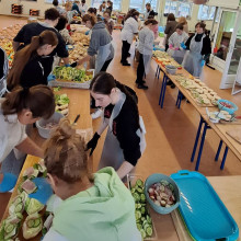 Zaangażowani w pomoc młodzi ludzie pod kierunkiem kadry pedagogicznej przygotowali poczęstunek, nakryli pięknie stoły oraz zapewnili sprawną organizację wydarzenia. Dzięki ich zaangażowaniu spotkanie zyskało ciepły, niemal rodzinny nastrój, który towarzyszył uczestnikom od rana.