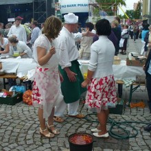 Goście wzięli udział w konkursie krojenia arbuza na czas. Wygrał Ambasador Chorwacji. Pokrojonymi owocami ambasadorowie częstowali bolesławian.