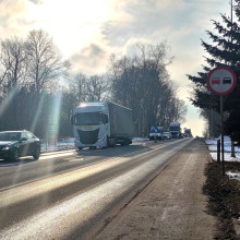 Cała ulica Kościuszki, w stronę centrum, jest zakorkowana, mnóstwo ciężarówek.