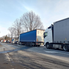 Zakorkowana jest także ulica Generała Nila (DK 94) wjazd do Bolesławca. Tam także widać dużą ilość ciężarówek.