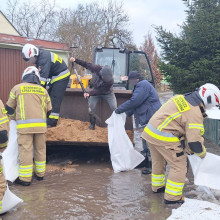 Dzięki wsparciu jednego z naszych druhów, który bezinteresownie użyczył specjalistycznego sprzętu i pomógł przy transporcie piasku, użyczonego od jednego z naszych mieszkańców, szybko i sprawnie zabezpieczaliśmy dom przed zalaniem.