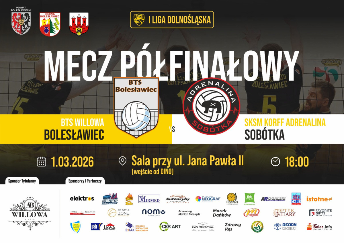 Już w sobotę, 28 lutego o 18:00, siatkarze BTS-u rozegrają pierwszy mecz półfinałowy na wyjeździe z Sobótką. Rewanż zaplanowano na niedzielę, 1 marca, w Bolesławcu. Rywalizacja toczy się do dwóch wygranych spotkań – zwycięzca awansuje do finału województwa, a jednocześnie zapewni sobie udział w turnieju barażowym o wejście do II ligi.