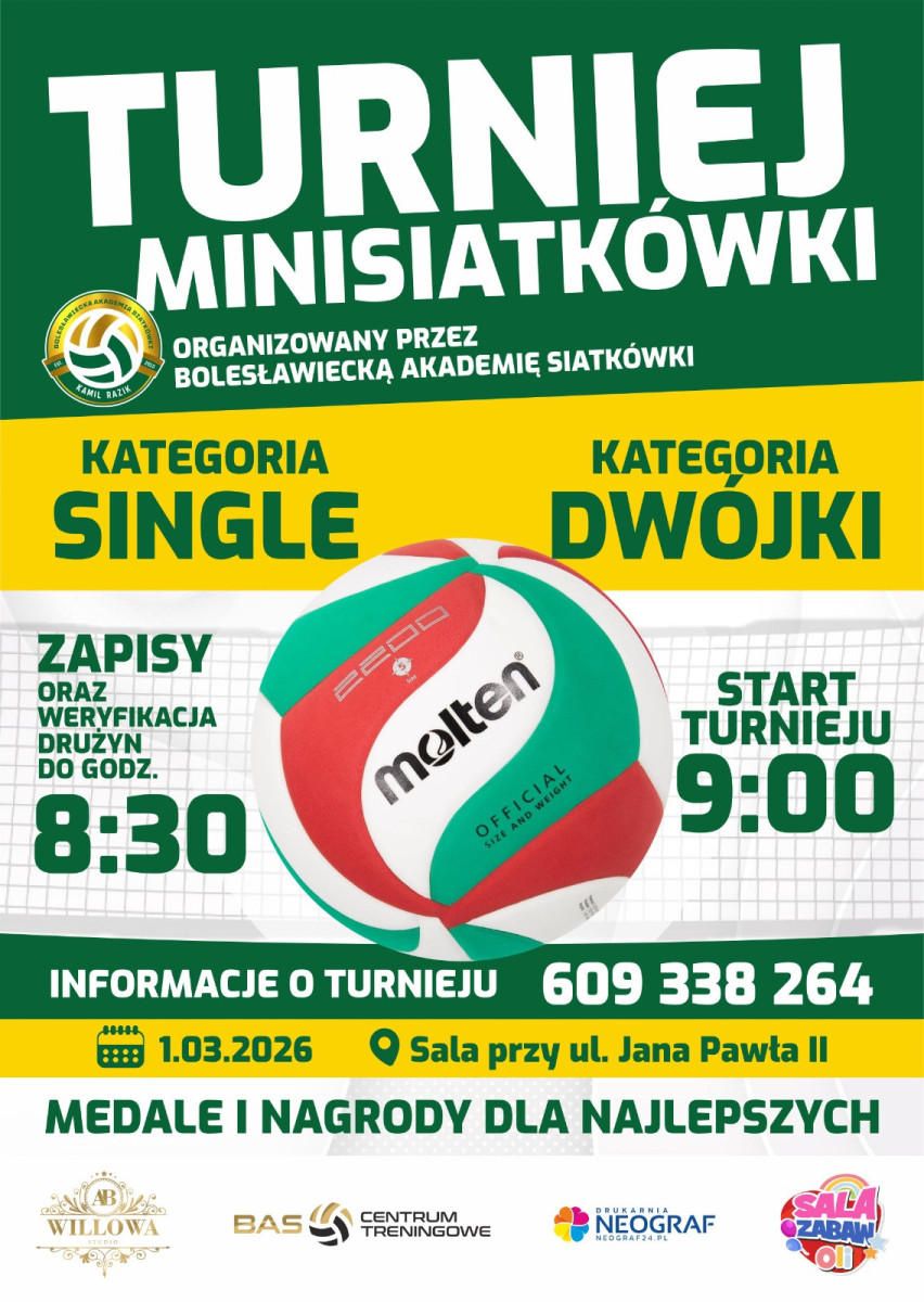 Tego samego dnia od rana w hali sportowej przy Szkole Podstawowej nr 1 w Bolesławcu (ul. Jana Pawła II) będzie trwał turniej mini siatkówki organizowany przez Bolesławiecką Akademię Siatkówki.
