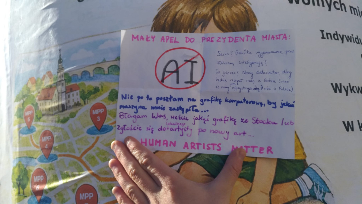 Na plakacie magistratu wykonanym przez sztuczna Inteligencję pojawił się skromny, ale bardzo ważny protest młodej artystki: