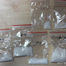 Podczas przeszukań funkcjonariusze zabezpieczyli kilka woreczków z substancją krystaliczną. Policja: – Wstępne badanie wykazało, że jest to metamfetamina. Łącznie policjanci zabezpieczyli ponad 1200 porcji tego narkotyku.
