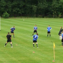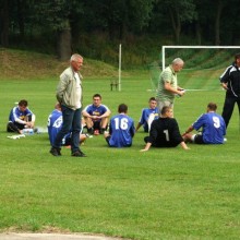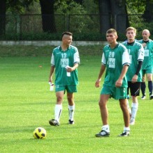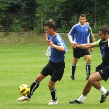 Jacek Bochnia (zielony strój) walczy o piłkę
