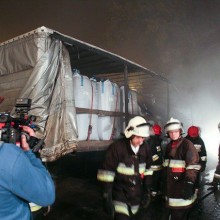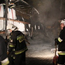 Z jednej strony plandeka spłonęła tylko w części, z drugiej strony prawie w całości fot. Krzysztof Gwizdała