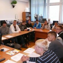 Grupa piętnastu uczniów klasy II i III Technikum Mechatronicznego realizowała w Laboratorium Automatyzacji Procesów Dyskretnych zadanie ćwiczeniowe z dziedziny elektropneumatyki, które polegało na zbudowaniu i rozbudowaniu układu elektro-pneumatycznego sterowania pracą siłownika dwustronnego działania. Z wyposażeniem pracowni, podstawami elektropneumatyki oraz przepisami BHP zapoznał podopiecznych „mechanika” dr Tadeusz Wiśniewski.