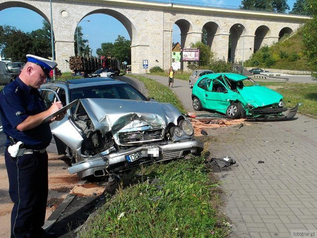 Do zdarzenia doszło w poniedziałek, 20 sierpnia, na obwodnicy Bolesławca, w rejonie wiaduktu. 36-letni mieszkaniec Gminy Osiecznica jechał Mercedesem, zjechał na przeciwny pas i zderzył się z Oplem Corsa. Oplem jechał 46-letni mieszkaniec Gminy Warta Bolesławiecka. Uderzony Opel zatrzymał się na chodniku – koło skateparku. Kierowca trafił do szpitala. Na szczęście 46-latek nie odniósł poważniejszych obrażeń i już opuścił szpital. Kierowca Mercedesa był pod wpływem alkoholu (2,34 promila). Dodatkowo 36-latek miał zakaz prowadzenia pojazdów.