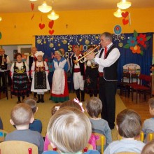 Zespół Pieśni i Tańca „Jutrzenka” to najbardziej znany zespół w naszym regionie kultywującym folklor, kulturę i tradycje byłej Jugosławii (serbską , bośniacką i chorwacką) Zespół zaprezentował przedszkolakom nie tylko ludowe stroje polskie, ale również chorwackie i serbskie. Dzieci poznały poszczególne elementy tych strojów i ich nazwy. Obejrzały z bliska takie instrumenty jak: akordeon, trąbka, klarnet, gitara oraz zapoznały się ich z brzmieniem.