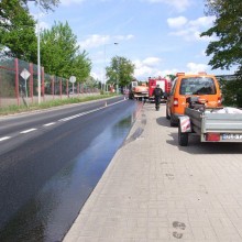 Z pojazdu wyciekła duża ilość oleju hydraulicznego. Plama na ulicy Cieszkowskiego ma przeszło 100 metrów długości. Na miejscu jest straż pożarna oraz pracownicy Generalnej Dyrekcji Dróg Krajowych i Autostrad. Trwa usuwanie plamy. Ruch odbywa się wahadłowo.
