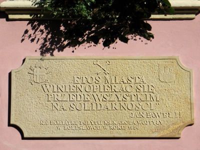 Na tablicy wmurowanej w zachodnią ścianę Ratusza wyryty został napis "Etos miasta powinien opierać się przede wszystkim na solidarności – Jan Paweł II". Tablicę odsłonięto 31 sierpnia na pamiątkę pobytu Karola Wojtyły w Bolesławcu.